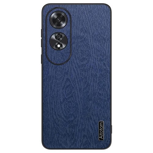 Funda para Teléfono a Prueba de Golpes de Cuero con Corteza de Árbol para Oppo A60 4G Global (Azul)