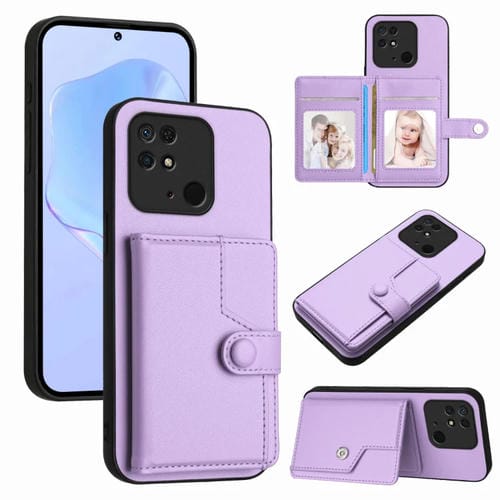 Funda para Teléfono Antirrobo con Botón y TaRJetero Rfid para Redmi 10C (Morado)