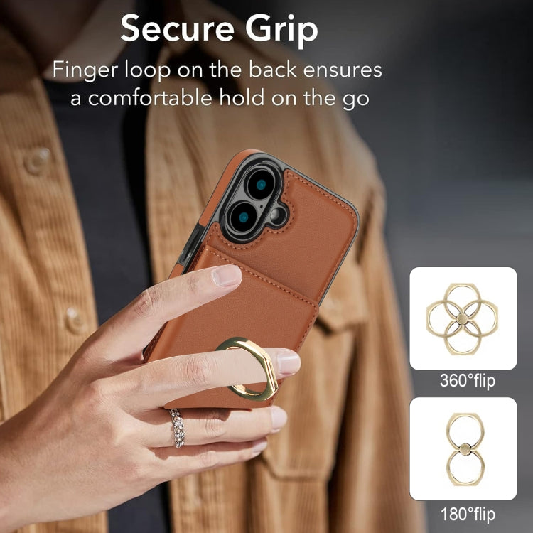 Funda para Teléfono con Anillo para Tarjeta Antirrobo Rfid para iPhone 16 (Marrón)