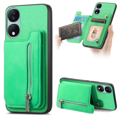 Funda para Teléfono con Cremallera Magsafe Retro para Honor X7B y Play 8T 5G (Verde)
