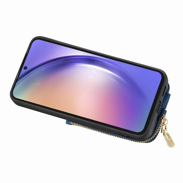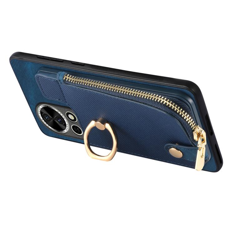 Funda para Teléfono Huawei P60 Pro con Cremallera Vertical y Anillo de Cuero Cruzado (Azul)