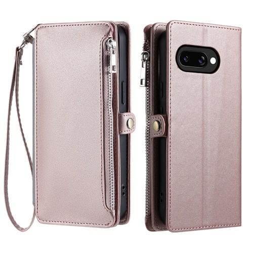 Funda de Cuero con Cremallera y Ranuras para Tarjetas para Google Pixel 9A (Oro Rosa)
