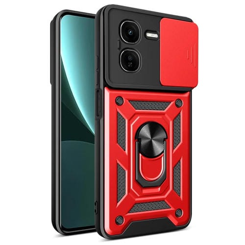 Funda para Teléfono con Diseño de Cámara Deslizante de TPU y PC para Vivo Iqoo Z9X (Roja)