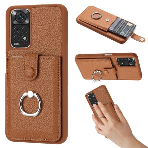 Funda para Teléfono con Diseño de Textura de Lichi para Redmi Note 11S, con Soporte para Anillo y Diseño de Tarjeta (Marrón)