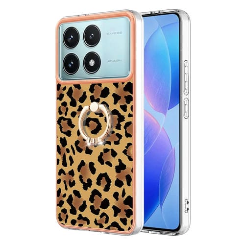 Funda para Teléfono con Galvanoplastia Imd de Doble Cara con Soporte para Anillo para Xiaomi Poco F6 Pro 5G (Estampado de Leopardo)