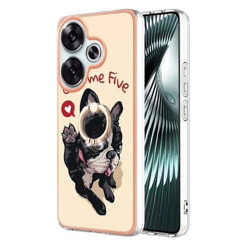Funda para Teléfono con Galvanoplastia Imd de Doble Cara para Xiaomi Poco F6 5G con Soporte para Anillo (Perro de la Suerte)