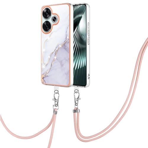 Funda para Teléfono con Imd de Doble Cara con Galvanoplastia de Mármol para Xiaomi Poco F6 5G con Cordón (Blanco 006)