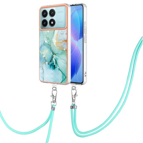 Funda para Teléfono con Imd de Doble Cara con Galvanoplastia de Mármol para Xiaomi Poco F6 Pro 5G con Cordón (Verde 003)
