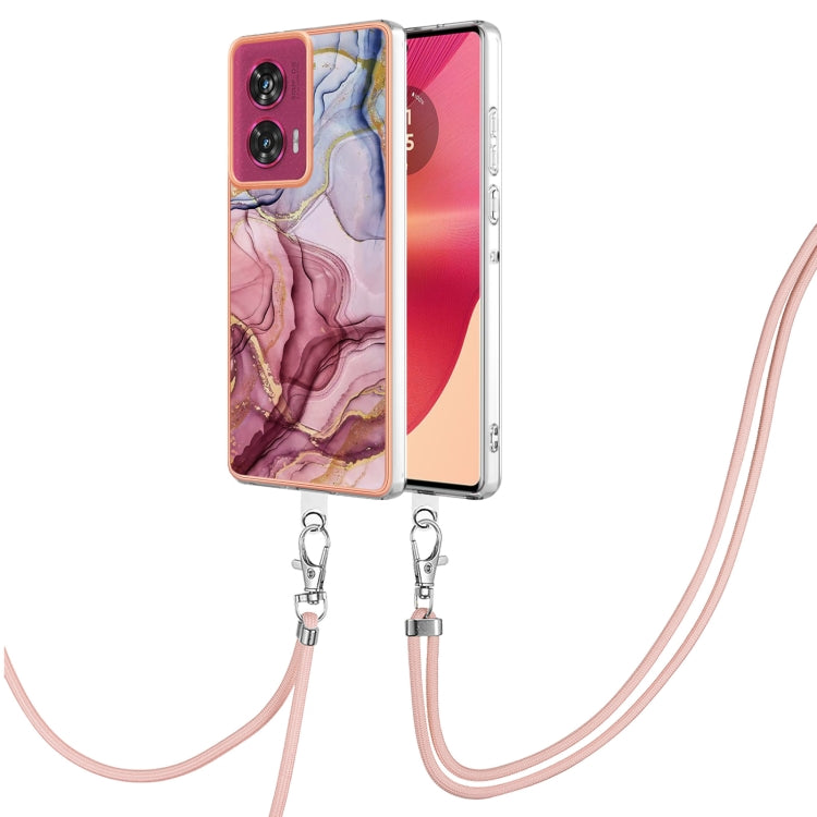 Funda para Teléfono Motorola Edge 50 Fusion con IMD Doble Cara y Galvanoplastia Mármol (Rojo Rosa)