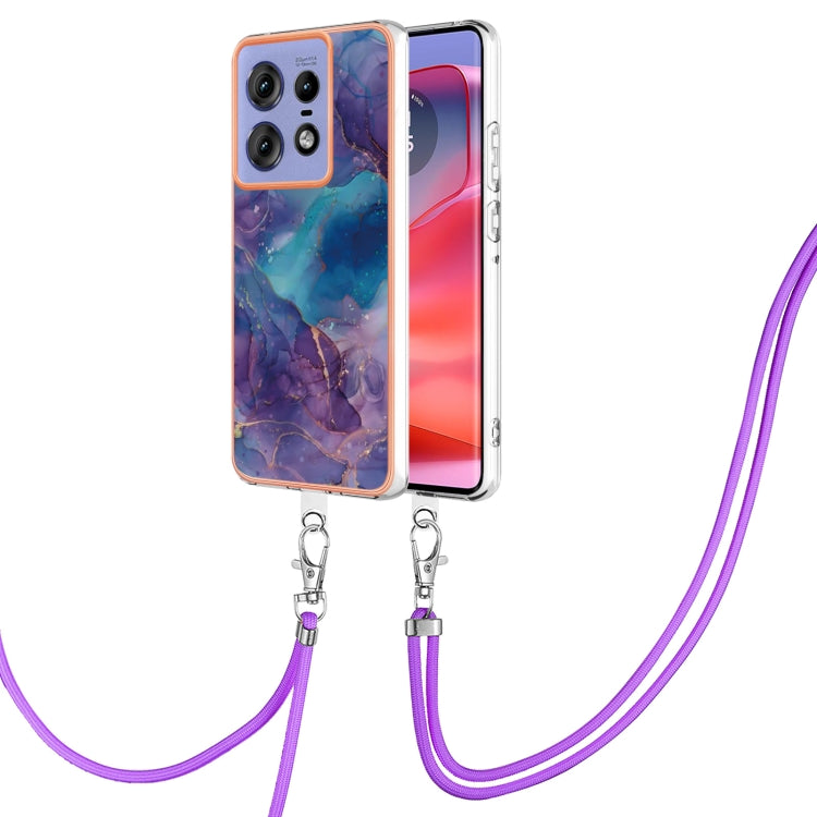 Funda para Teléfono Motorola Edge 50 Pro con Imd Doble Cara y Revestimiento Mármol (Púrpura) con Cordón