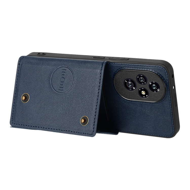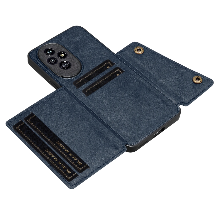 Funda para Teléfono Honor 200 con Ranuras para Tarjetas y Doble Hebilla Magnética (Azul)