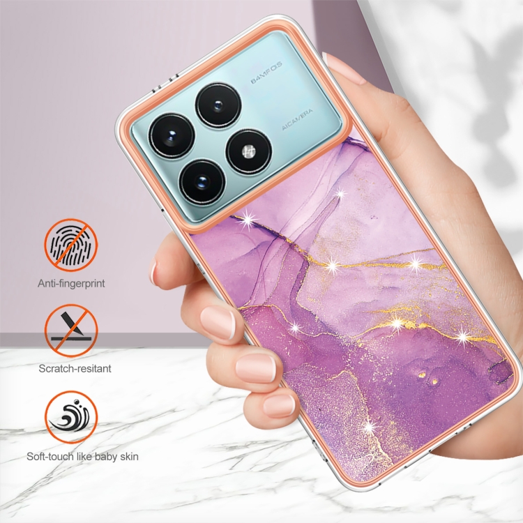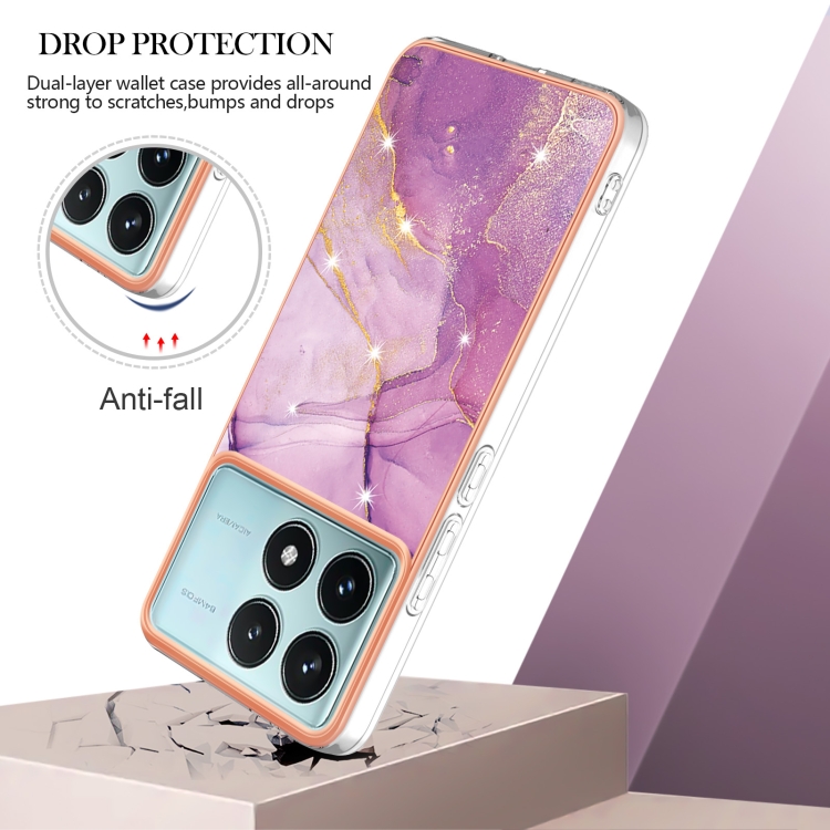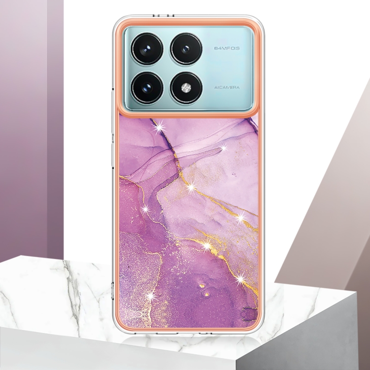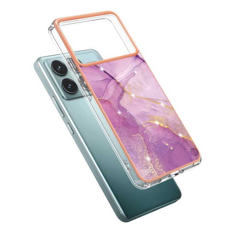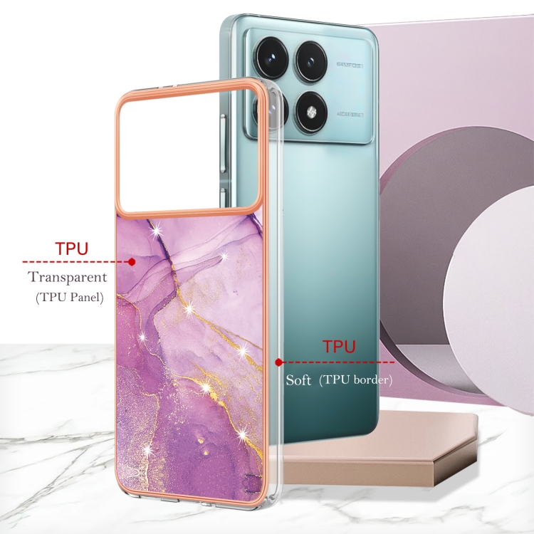 Funda para Teléfono con Revestimiento de Mármol Galvanizado de Doble Cara Imd para Xiaomi Poco F6 Pro 5G (Morado 001)