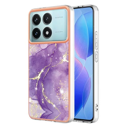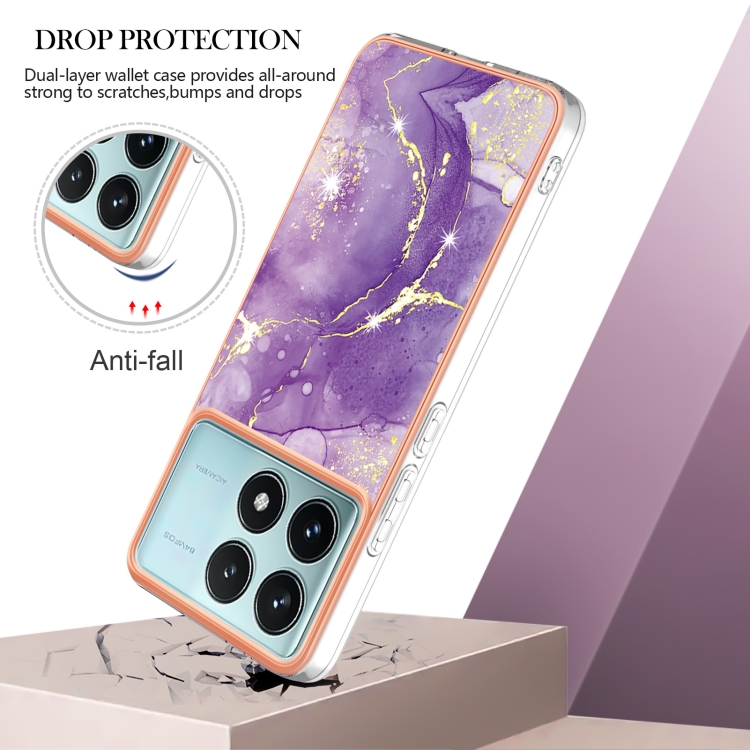 Funda para Teléfono con Revestimiento de Mármol Galvanizado de Doble Cara Imd para Xiaomi Poco F6 Pro 5G (Morado 002)