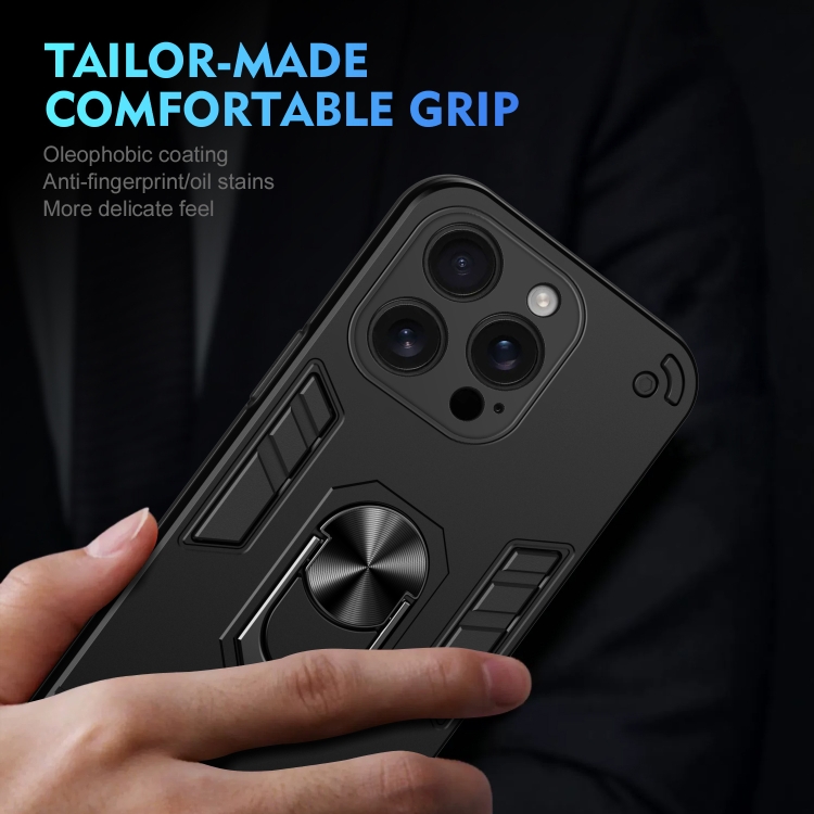 Funda para Teléfono iPhone 16 Pro Soporte de Anillo Metal a Prueba de Golpes (Negro)