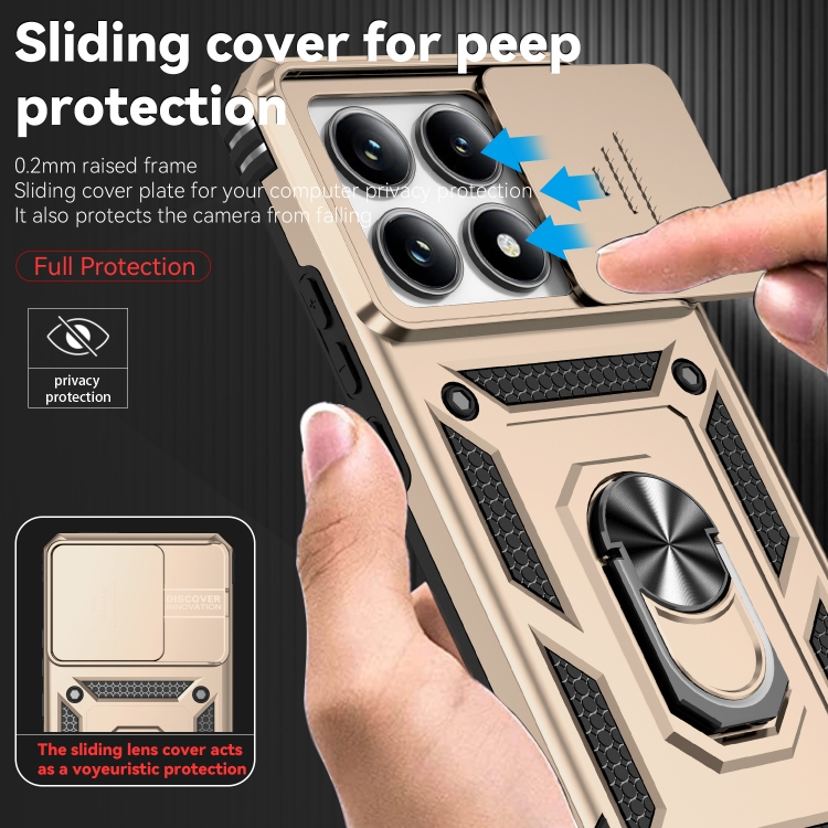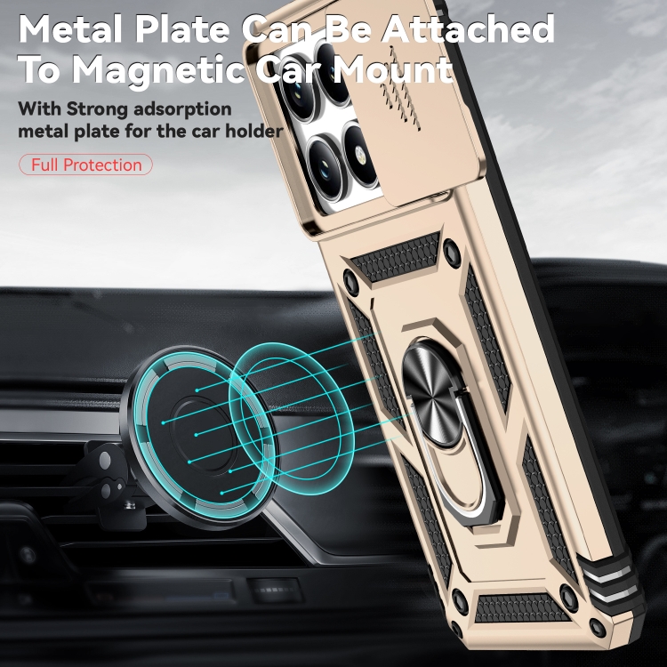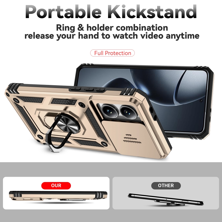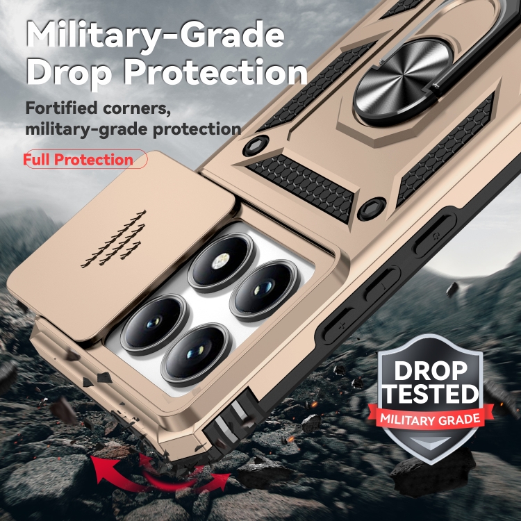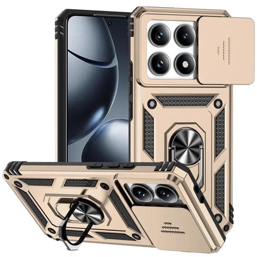 Funda para Teléfono con Soporte Deslizante Camshield para Xiaomi 14T Pro (Dorada)