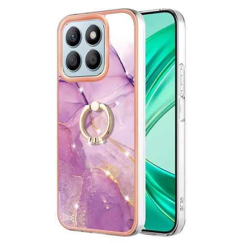 Funda para Teléfono Honor X8B con Soporte para Anillo y Revestimiento Mármol Imd TPU (Púrpura)