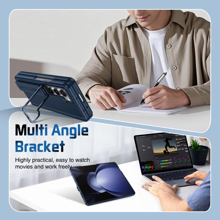 Funda para teléfono con soporte para lente integrada y correa para Samsung Galaxy Z Fold5 (azul oscuro)