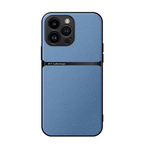 Funda para Teléfono iPhone 15 Pro Max Piel de Lichi Tapa Magnética Azul