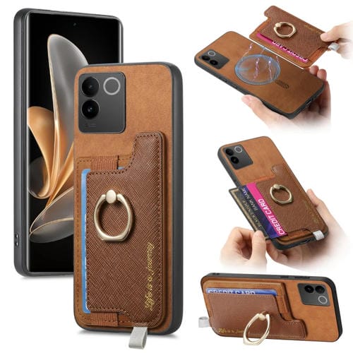 Funda para Teléfono con TaRJetero y Anillo de Cuero con Diseño Retro Magsafe para Vivo S17E / Iqoo Z7 Pro / T2 Pro (Marrón)