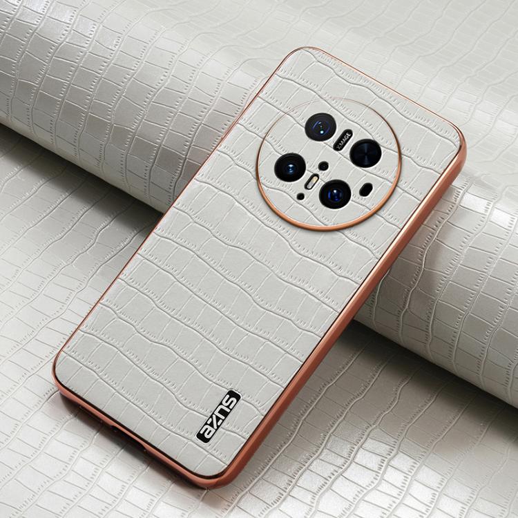 Funda para Teléfono Azns Textura de Cocodrilo con Marco Galvanizado para Huawei Mate 70 Pro/70 Pro+ (Blanca)