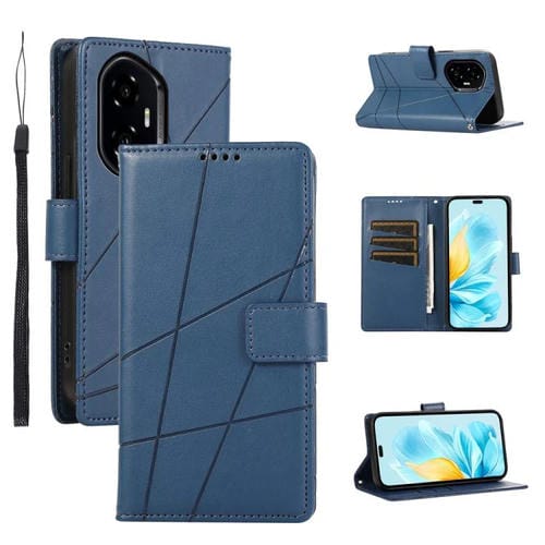Funda para Teléfono Honor 300 Pro/300 Ultra Cuero Genuino PU con Líneas en Relieve (Azul)