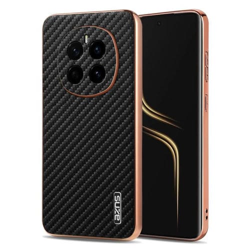Funda para Teléfono Azns con Textura de Fibra de Carbono y Borde Galvanizado para Honor Magic7 (Negra)