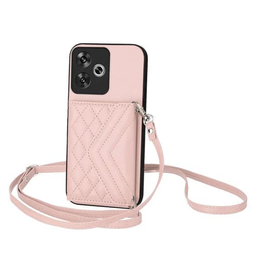 Funda para Teléfono con Textura Rombal y Rfid para Redmi Turbo 3 con Cordón Largo (Oro Rosa)