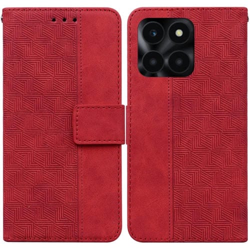 Funda para Teléfono Honor X6A Cuero Relieve Geométrico (Rojo)