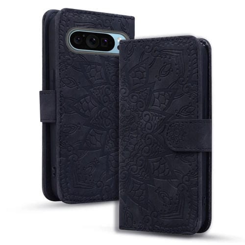 Funda para Teléfono Piel de Becerro Google Pixel 9/9 Pro Doble Pliegue Mandala (Negra)