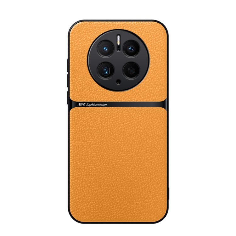 Funda para Teléfono Huawei Mate 50 Pro de Piel de Lichi con Cobertura Total Magnética y a Prueba de Golpes (Amarilla)