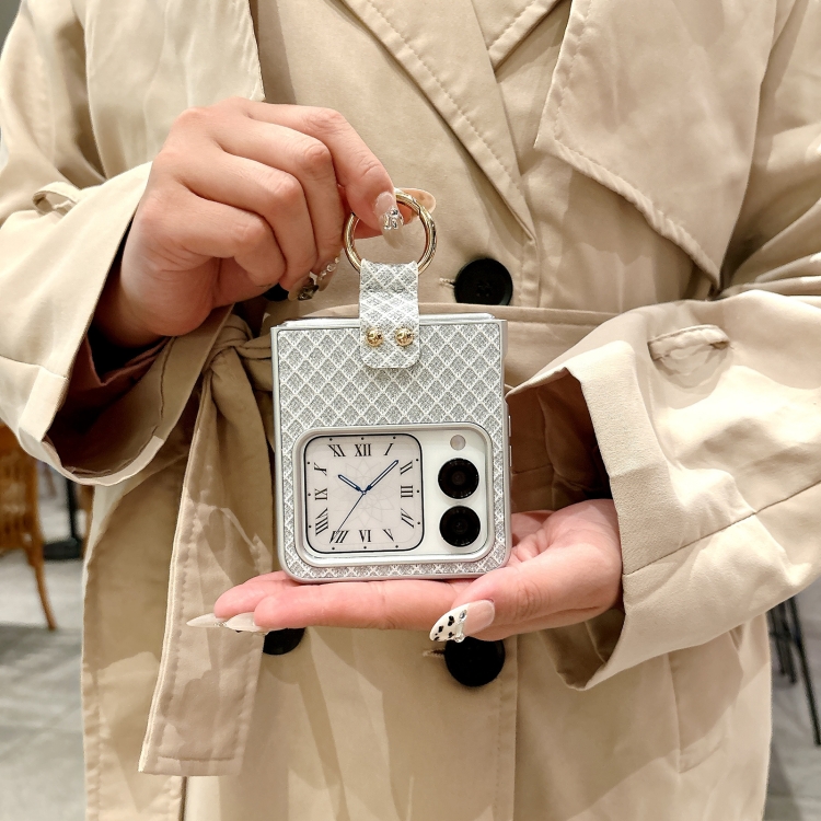 Funda para Teléfono Huawei Nova Flip con Diseño de Rombos, Diamantes Brillantes y Anillo (Plateada)