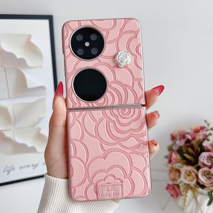 Funda para Teléfono Huawei P50 Pocket con Diseño de Cuadros 3D de Camelia (Rosa)