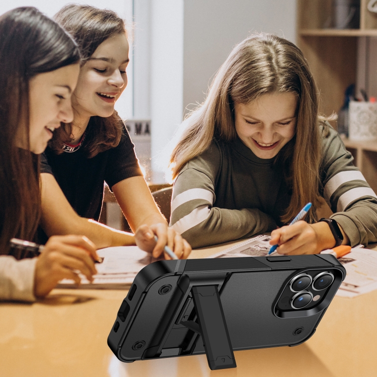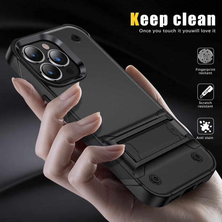 Funda para Teléfono PC + TPU a Prueba de Golpes con Soporte para iPhone 14 Max (Negro)
