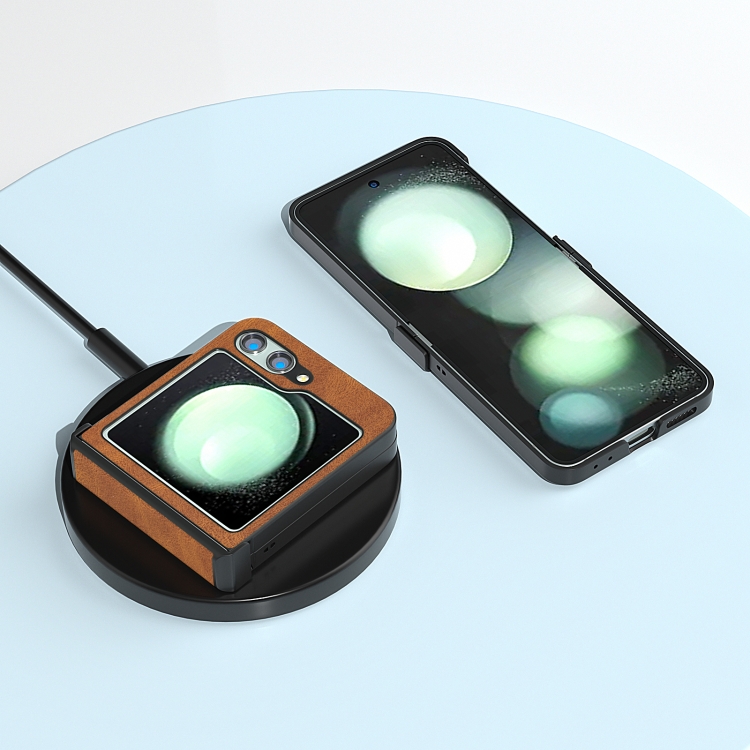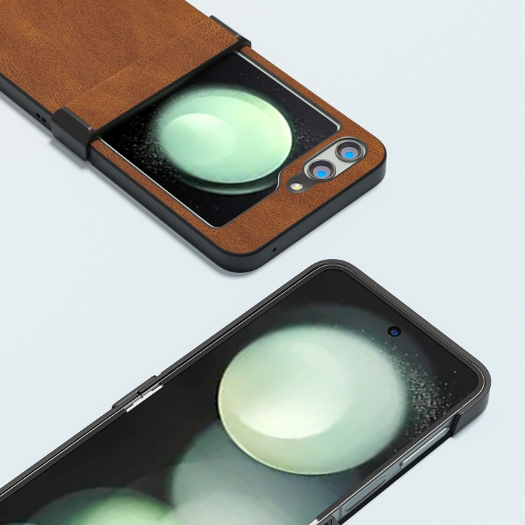 Funda para Teléfono Samsung Galaxy Z Flip5 con Bisagra Textura Retro de Pu (Marrón)