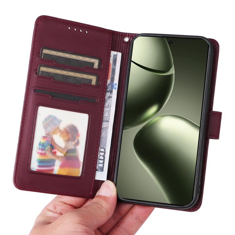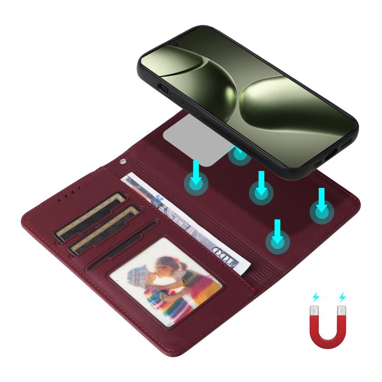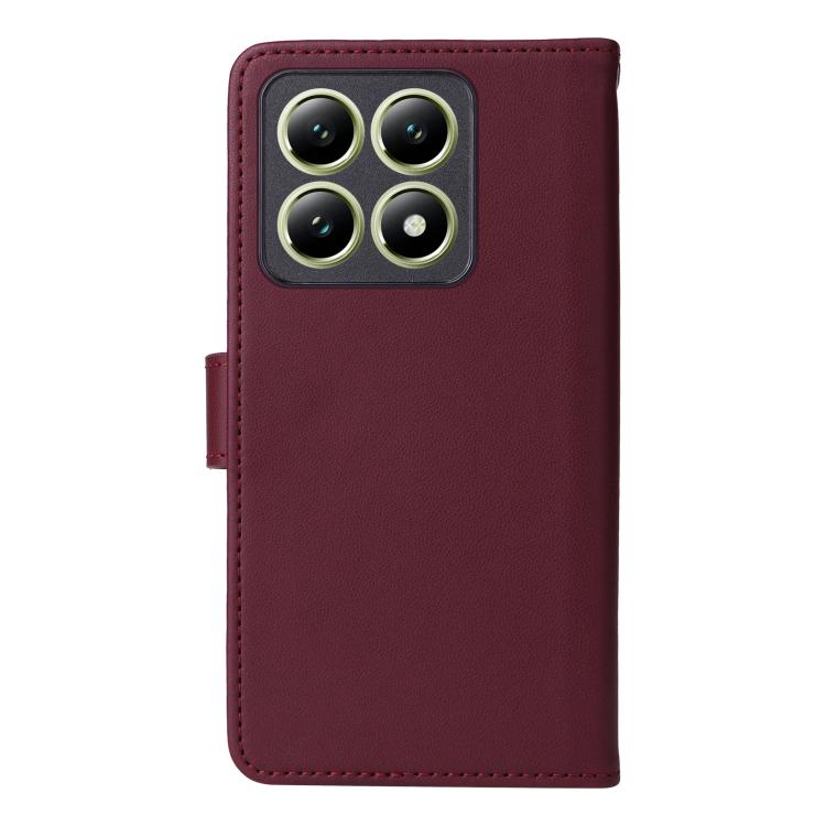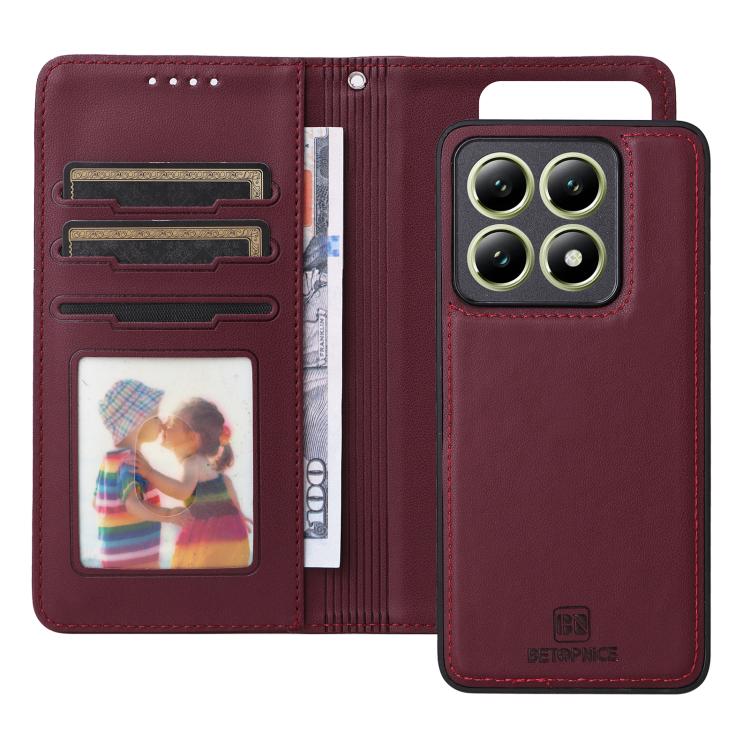 Funda Para Teléfono Xiaomi 14T Betopnice Bn-005 2 En 1 De Piel Auténtica De Imitación Desmontable (Rojo Vino)