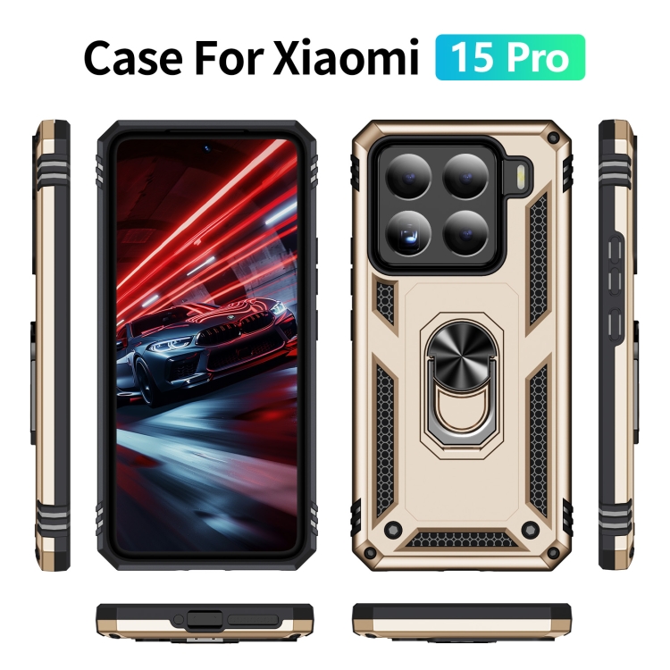 Funda Para Teléfono Xiaomi 15 Pro A Prueba De Golpes De Tpu + Pc Con Soporte (Dorado)