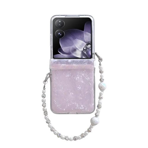 Funda para Teléfono Xiaomi Mix Flip con Textura de Carcasa Perlada En Tres Partes y Pulsera (Rosa)