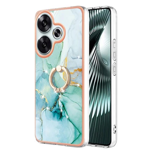 Funda para Teléfono Xiaomi Poco F6 5G con Galvanoplastia de Mármol Imd TPU y Soporte para Anillo (Verde 003)