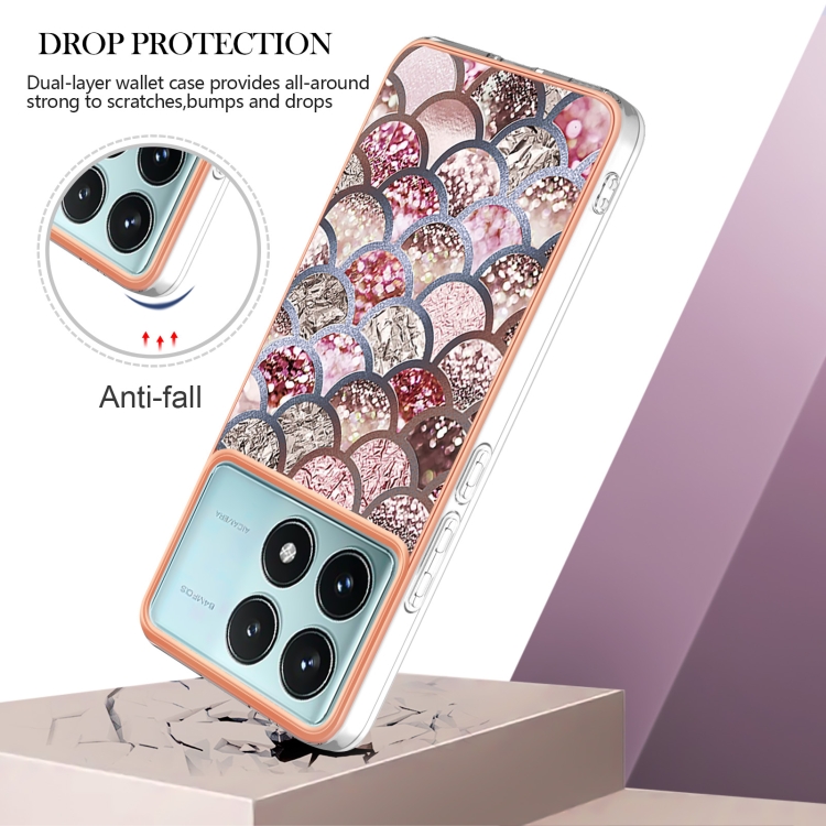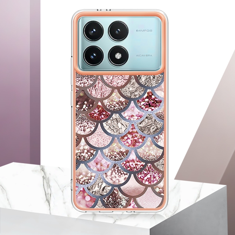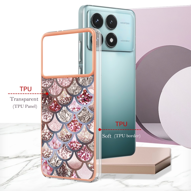 Funda para Teléfono Xiaomi Poco F6 Pro 5G con Galvanoplastia Imd TPU (Escamas Rosas)
