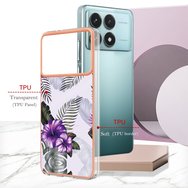 Funda para Teléfono Xiaomi Poco F6 Pro 5G con Galvanoplastia Imd TPU (Flor Morada)