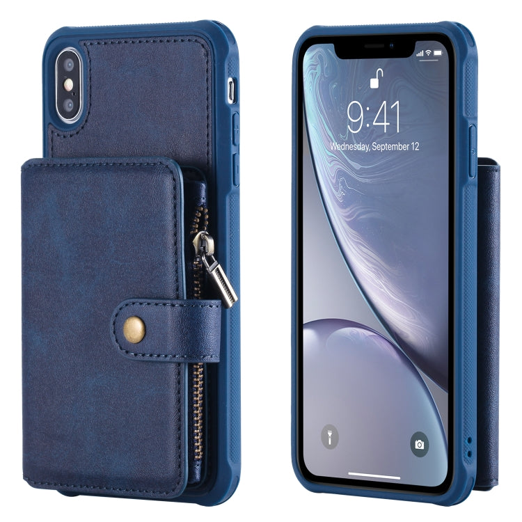 Funda Protectora iPhone Xs Max con Cremallera Ranuras Tarjetas Soporte Fotos Billetera (Azul)