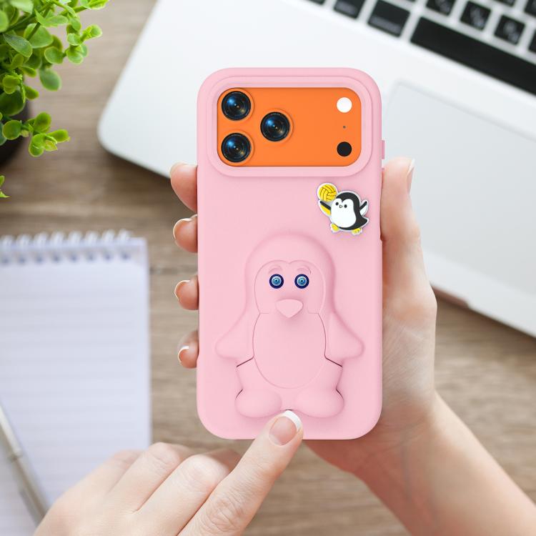 Funda protectora antigolpes Penguin Baby de EVA para iPhone 17 Pro Max con soporte (rosa)