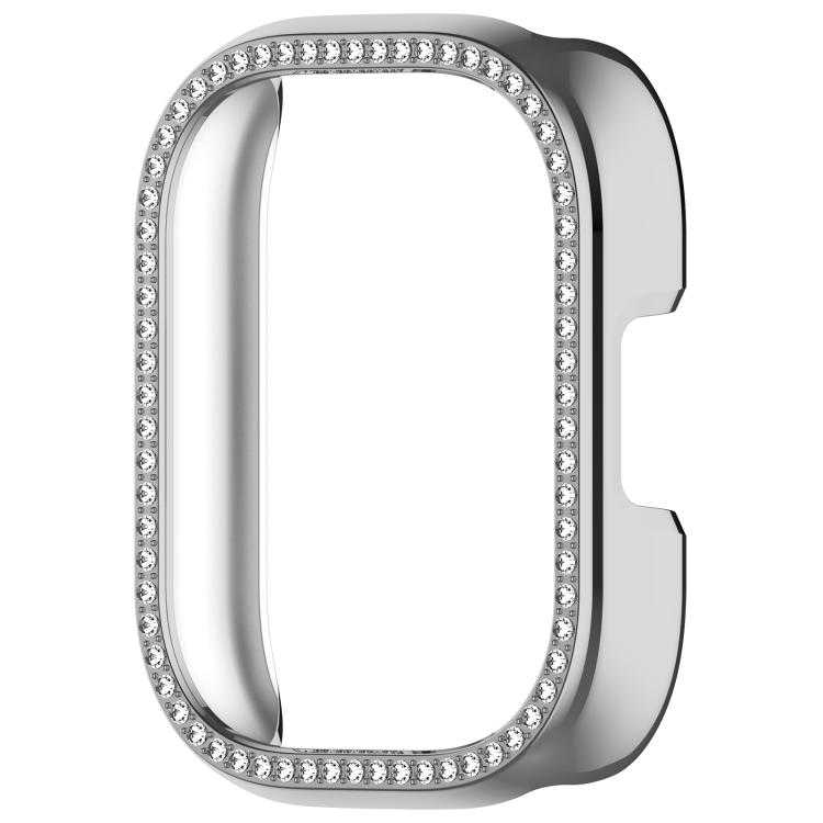 Funda protectora de PC hueca con una sola fila de diamantes y media cobertura para Redmi Watch 5 Lite (plateada)