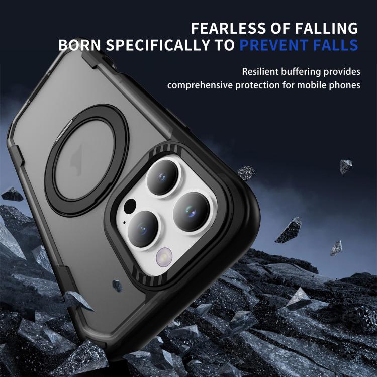 Funda protectora MagSafe para iPhone 16 Pro (negro + gris transparente)