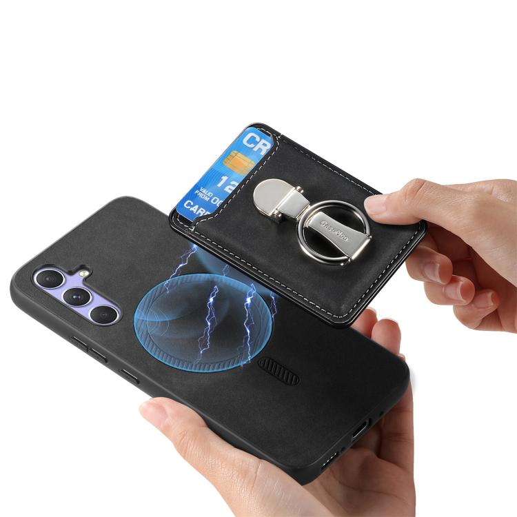 Funda retro plegable con anillo y tarjetero MagSafe para Samsung Galaxy A36 5G (negra)