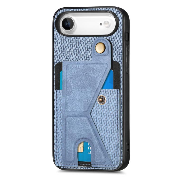 Funda tipo cartera de fibra de carbono con tarjetero en forma de K para iPhone Air (azul)