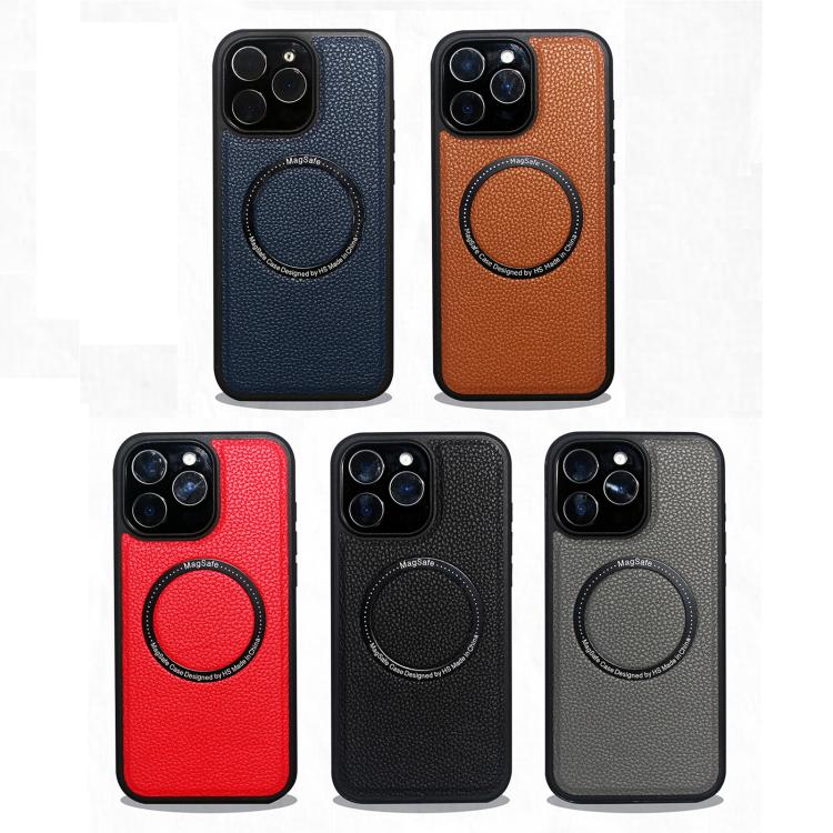 Funda trasera MagSafe de PU con textura de lichi para iPhone 16 Pro Max (negra)