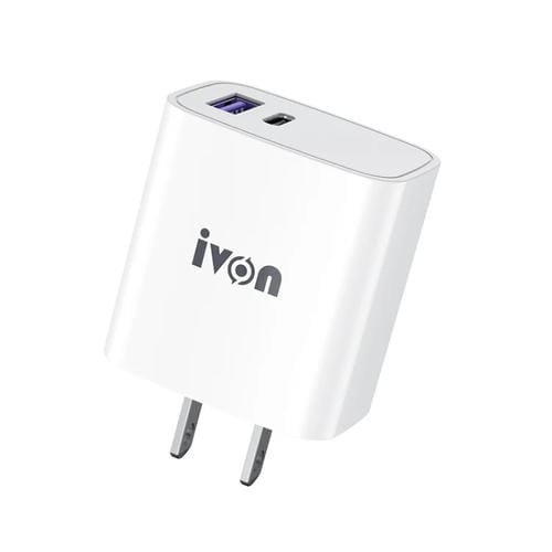 Cargador Ivon Ad52 18W Usb-C Type-C y Usb Puerto Dual Pd Carga Rápida (Enchufe de Ee. Uu.)