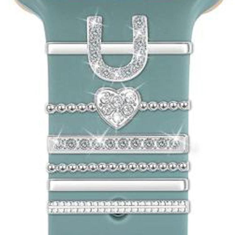 Juego de 6 correas de silicona universales para reloj inteligente, accesorios de metal decorativos, talla U (plateadas)