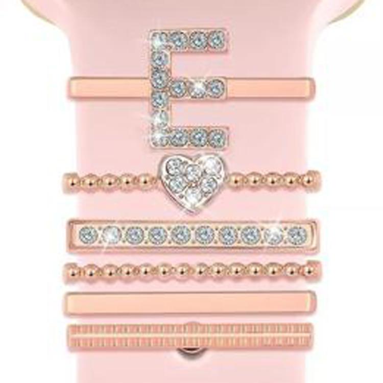 Juego de 6 correas de silicona universales para reloj inteligente, anillos decorativos de metal, talla E (oro rosa)